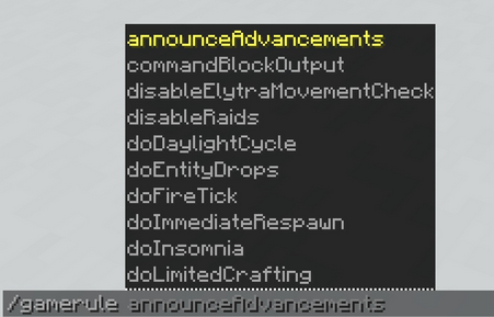 Při vytváření světa jsme si nastavovali pravidla (Game Rules). Tato pravidla můžeme kdykoliv změnit a to pomocí příkazu /gamerule.