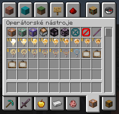 Se spouštěním příkazů z chatu si u programování nevystačíme, takže si ukážeme další nástroje, které budeme používat. Na to abychom tyto nástroje mohli získat si v nastavení musíme si zobrazit skrytou záložku v inventáři. Pozastavíme hru klávesou